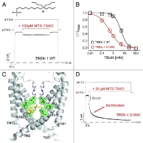 State-independent intracellular access of quaternary ammonium blockers to the pore of TREK-1. , Rapedius M, Schmidt MR , Sharma C, Stansfeld PJ, Sansom MS, Baukrowitz T, Tucker SJ., Channels (Austin). January 1, 2012; 6 (6): 473-8.