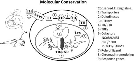 Xenopus laevis as a model for studying thyroid hormone signalling: from development to metamorphosis. , Morvan-Dubois G, Demeneix BA , Sachs LM ., Mol Cell Endocrinol. October 10, 2008; 293 (1-2): 71-9.