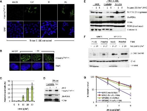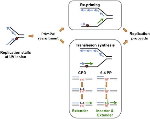 PrimPol bypasses UV photoproducts during eukaryotic chromosomal DNA replication. , Bianchi J, Rudd SG, Jozwiakowski SK, Bailey LJ, Soura V, Taylor E, Stevanovic I, Green AJ, Stracker TH, Lindsay HD , Doherty AJ., Mol Cell. November 21, 2013; 52 (4): 566-73.