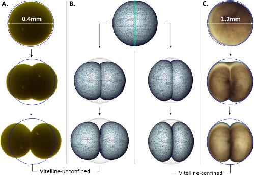 On the embryonic cell division beyond the contractile ring mechanism: experimental and computational investigation of effects of vitelline confinement, temperature and egg size., Gladilin E, Eils R, Peshkin L., PeerJ. December 10, 2015; 3 e1490.