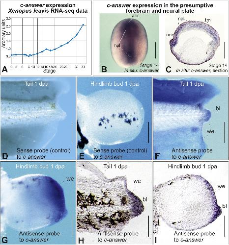 Bioinformatics Screening of Genes Specific for Well-Regenerating Vertebrates Reveals c-answer, a Regulator of Brain Development and Regeneration., Korotkova DD, Lyubetsky VA, Ivanova AS, Rubanov LI, Seliverstov AV, Zverkov OA, Martynova NY, Nesterenko AM, Tereshina MB, Peshkin L, Zaraisky AG., Cell Rep. October 22, 2019; 29 (4): 1027-1040.e6.