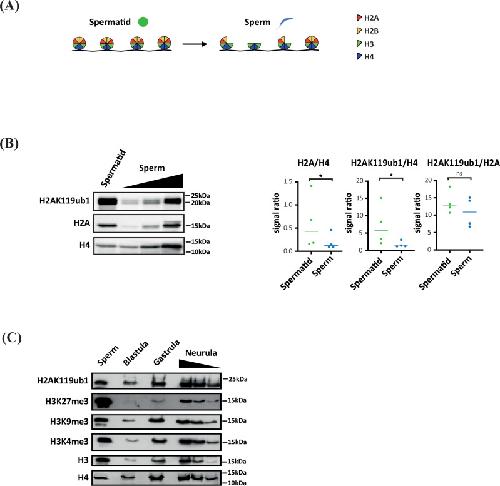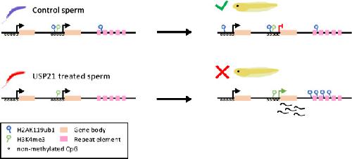 Sperm derived H2AK119ub1 is required for embryonic development in Xenopus laevis., Francois-Campion V, Berger F, Oikawa M, Goumeidane M, Mouniée N, Chenouard V, Petrova K, Abreu JG, Fourgeux C, Poschmann J, Peshkin L, Gibeaux R, Jullien J., Nat Commun. April 5, 2025; 16 (1): 3268.