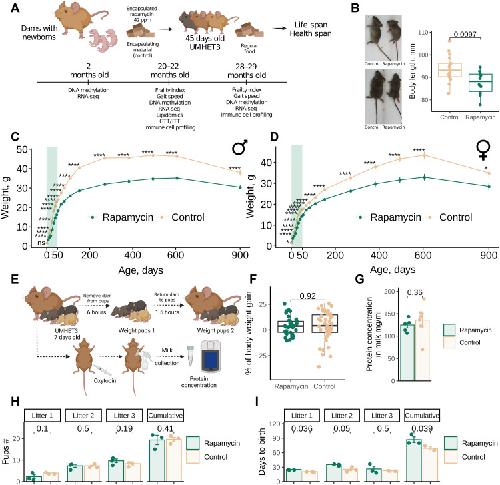 Rapamycin treatment during development extends life span and health span of male mice and Daphnia magna., Shindyapina AV, Cho Y, Kaya A, Tyshkovskiy A, Castro JP, Deik A, Gordevicius J, Poganik JR, Clish CB, Horvath S, Peshkin L, Gladyshev VN., Sci Adv. September 16, 2022; 8 (37): eabo5482.