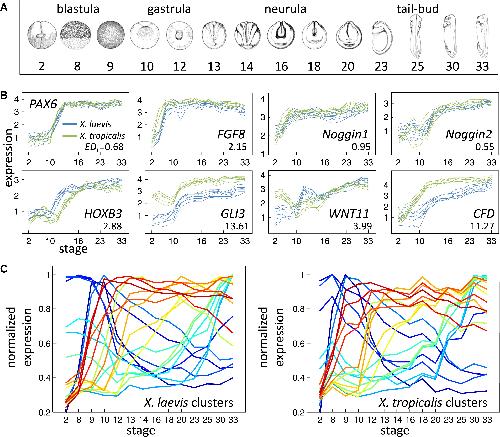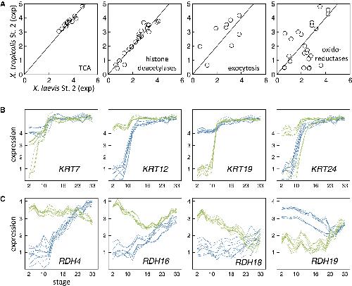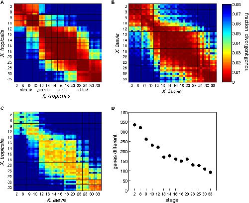 Mapping gene expression in two Xenopus species: evolutionary constraints and developmental flexibility., Yanai I, Peshkin L, Jorgensen P, Kirschner MW., Dev Cell. April 19, 2011; 20 (4): 483-96.