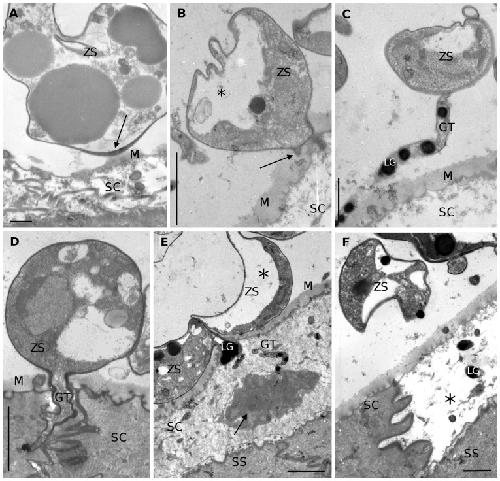 Batrachochytrium dendrobatidis zoospore secretions rapidly disturb intercellular junctions in frog skin., Brutyn M, D'Herde K, Dhaenens M, Van Rooij P, Verbrugghe E, Hyatt AD, Croubels S, Deforce D, Ducatelle R, Haesebrouck F, Martel A, Pasmans F., Fungal Genet Biol. October 1, 2012; 49 (10): 830-7. |