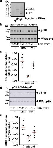 The M-phase regulatory phosphatase PP2A-B55δ opposes protein kinase A on Arpp19 to initiate meiotic division. , Lemonnier T, Daldello EM, Poulhe R, Le T, Miot M, Lignières L, Jessus C , Dupré A ., Nat Commun. March 23, 2021; 12 (1): 1837.