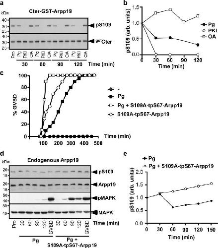 The phosphorylation of ARPP19 by Greatwall renders the auto-amplification of MPF independently of PKA in Xenopus oocytes. , Dupré A , Buffin E, Roustan C, Nairn AC, Jessus C , Haccard O ., J Cell Sci. September 1, 2013; 126 (Pt 17): 3916-26.
