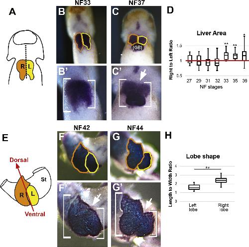The left- right asymmetry of liver lobation is generated by Pitx2c-mediated asymmetries in the hepatic diverticulum. , Womble M , Amin NM , Nascone-Yoder N ., Dev Biol. July 15, 2018; 439 (2): 80-91.