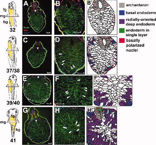 Morphogenesis of the primitive gut tube is generated by Rho/ROCK/myosin II-mediated endoderm rearrangements. , Reed RA, Womble MA , Dush MK, Tull RR, Bloom SK, Morckel AR, Devlin EW, Nascone-Yoder NM ., Dev Dyn. December 1, 2009; 238 (12): 3111-25.