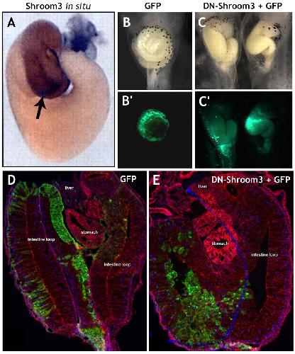 Direct activation of Shroom3 transcription by Pitx proteins drives epithelial morphogenesis in the developing gut. , Chung MI , Nascone-Yoder NM , Grover SA, Drysdale TA , Wallingford JB ., Development. April 1, 2010; 137 (8): 1339-49.