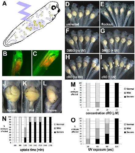 Photocaged morpholino oligomers for the light-regulation of gene function in zebrafish and Xenopus embryos. , Deiters A, Garner RA, Lusic H, Govan JM, Dush M, Nascone-Yoder NM , Yoder JA., J Am Chem Soc. November 10, 2010; 132 (44): 15644-50.