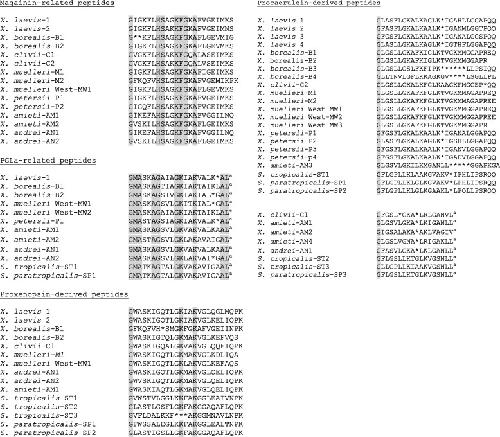 Peptidomic analysis of the extensive array of host-defense peptides in skin secretions of the dodecaploid frog Xenopus ruwenzoriensis (Pipidae). , Coquet L, Kolodziejek J, Jouenne T, Nowotny N, King JD , Conlon JM., Comp Biochem Physiol Part D Genomics Proteomics. September 1, 2016; 19 18-24.