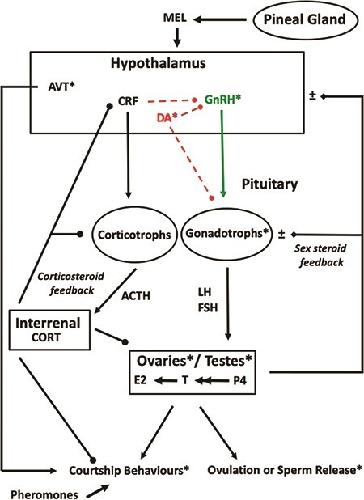 Transcript profiles and triiodothyronine regulation of sex steroid- and thyroid hormone-related genes in the gonad- mesonephros complex of Silurana tropicalis. , Duarte-Guterman P, Trudeau VL ., Mol Cell Endocrinol. January 1, 2011; 331 (1): 143-9.