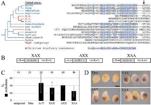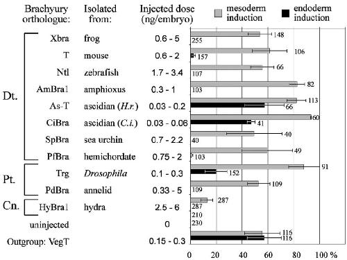 Evolution of Brachyury proteins: identification of a novel regulatory domain conserved within Bilateria. , Marcellini S , Technau U, Smith JC , Lemaire P ., Dev Biol. August 15, 2003; 260 (2): 352-61.