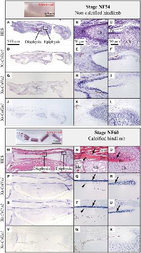 Evolution of the vertebrate bone matrix: an expression analysis of the network forming collagen paralogues in amphibian osteoblasts. , Aldea D, Hanna P, Munoz D, Espinoza J, Torrejon M , Sachs L , Buisine N , Oulion S, Escriva H, Marcellini S ., J Exp Zool B Mol Dev Evol. September 1, 2013; 320 (6): 375-84.