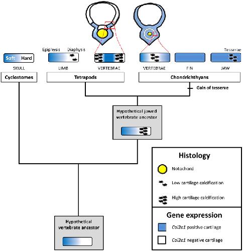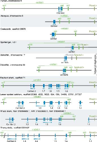 Skeletal Mineralization in Association with Type X Collagen Expression Is an Ancestral Feature for Jawed Vertebrates. , Debiais-Thibaud M, Simion P, Ventéo S, Muñoz D, Marcellini S , Mazan S, Haitina T., Mol Biol Evol. October 1, 2019; 36 (10): 2265-2276.