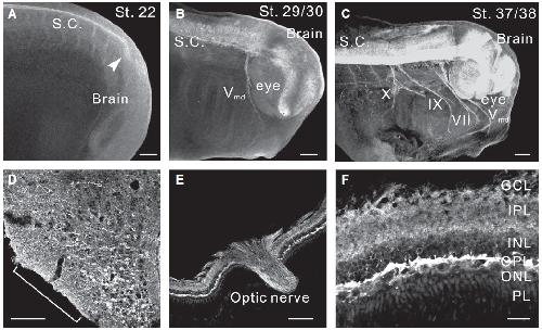 Xefiltin, a Xenopus laevis neuronal intermediate filament protein, is expressed in actively growing optic axons during development and regeneration. , Zhao Y, Szaro BG ., J Neurobiol. November 20, 1997; 33 (6): 811-24.