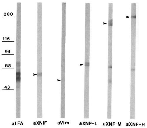 Identification and developmental expression of a novel low molecular weight neuronal intermediate filament protein expressed in Xenopus laevis. , Charnas LR, Szaro BG , Gainer H ., J Neurosci. August 1, 1992; 12 (8): 3010-24.