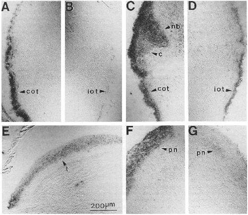 Xenopus laevis peripherin ( XIF3) is expressed in radial glia and proliferating neural epithelial cells as well as in neurons. , Gervasi C , Stewart CB, Szaro BG ., J Comp Neurol. July 31, 2000; 423 (3): 512-31.