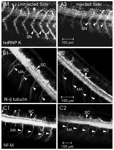 c- Jun N-terminal kinase phosphorylation of heterogeneous nuclear ribonucleoprotein K regulates vertebrate axon outgrowth via a posttranscriptional mechanism. , Hutchins EJ , Szaro BG ., J Neurosci. September 11, 2013; 33 (37): 14666-80.
