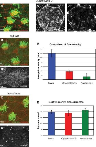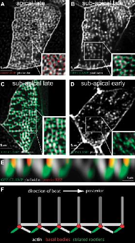 Actin and microtubules drive differential aspects of planar cell polarity in multiciliated cells., Werner ME, Hwang P, Huisman F, Taborek P, Yu CC, Mitchell BJ., J Cell Biol. October 3, 2011; 195 (1): 19-26. |