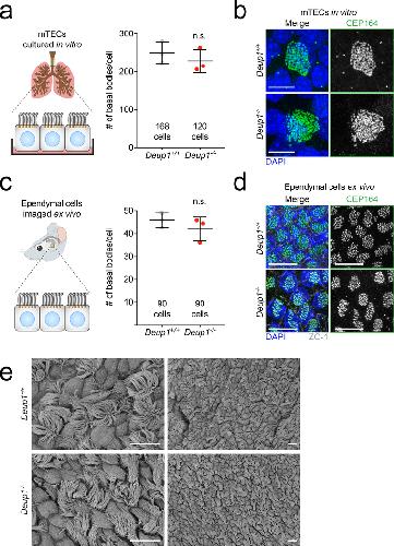 Massive centriole production can occur in the absence of deuterosomes in multiciliated cells., Mercey O, Levine MS, LoMastro GM, Rostaing P, Brotslaw E, Gomez V, Kumar A, Spassky N, Mitchell BJ, Meunier A, Holland AJ., Nat Cell Biol. December 1, 2019; 21 (12): 1544-1552. |