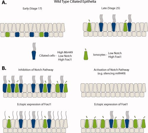 Notch signaling induces either apoptosis or cell fate change in multiciliated cells during mucociliary tissue remodeling., Tasca A, Helmstädter M, Brislinger MM, Haas M, Mitchell B, Walentek P., Dev Cell. February 22, 2021; 56 (4): 525-539.e6. |