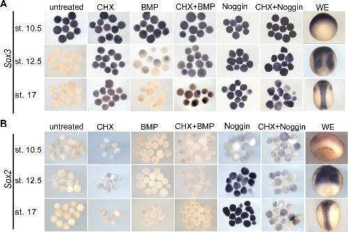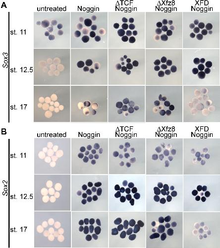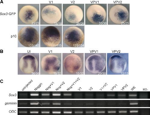 Xenopus Sox3 activates sox2 and geminin and indirectly represses Xvent2 expression to induce neural progenitor formation at the expense of non-neural ectodermal derivatives. , Rogers CD, Harafuji N, Archer T, Cunningham DD , Casey ES ., Mech Dev. January 1, 2009; 126 (1-2): 42-55.