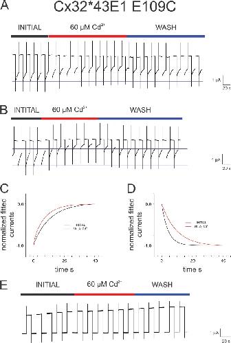 Voltage-dependent gating of the Cx32*43E1 hemichannel: conformational changes at the channel entrances., Kwon T, Tang Q, Bargiello TA., J Gen Physiol. February 1, 2013; 141 (2): 243-59. |