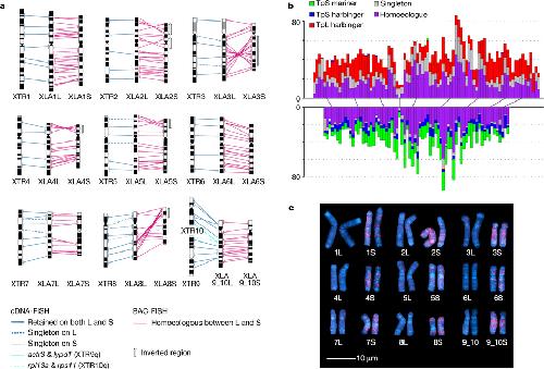 Genome evolution in the allotetraploid frog Xenopus laevis., Session AM, Uno Y, Kwon T, Chapman JA, Toyoda A, Takahashi S, Fukui A, Hikosaka A, Suzuki A, Kondo M, van Heeringen SJ, Quigley I, Heinz S, Ogino H, Ochi H, Hellsten U, Lyons JB, Simakov O, Putnam N, Stites J, Kuroki Y, Tanaka T, Michiue T, Watanabe M, Bogdanovic O, Lister R, Georgiou G, Paranjpe SS, van Kruijsbergen I, Shu S, Carlson J, Kinoshita T, Ohta Y, Mawaribuchi S, Jenkins J, Grimwood J, Schmutz J, Mitros T, Mozaffari SV, Suzuki Y, Haramoto Y, Yamamoto TS, Takagi C, Heald R, Miller K, Haudenschild C, Kitzman J, Nakayama T, Izutsu Y, Robert J, Fortriede J, Burns K, Lotay V, Karimi K, Yasuoka Y, Dichmann DS, Flajnik MF, Houston DW, Shendure J, DuPasquier L, Vize PD, Zorn AM, Ito M, Marcotte EM, Wallingford JB, Ito Y, Asashima M, Ueno N, Matsuda Y, Veenstra GJ, Fujiyama A, Harland RM, Taira M, Rokhsar DS., Nature. October 20, 2016; 538 (7625): 336-343. |