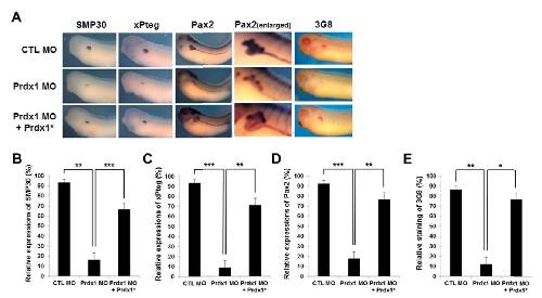 Peroxiredoxin1, a novel regulator of pronephros development, influences retinoic acid and Wnt signaling by controlling ROS levels., Chae S, Lee HK, Kim YK, Jung Sim H, Ji Y, Kim C, Ismail T, Park JW, Kwon OS, Kang BS, Lee DS, Bae JS, Kim SH, Min KJ, Kyu Kwon T, Park MJ, Han JK, Kwon T, Park TJ, Lee HS., Sci Rep. August 21, 2017; 7 (1): 8874. |