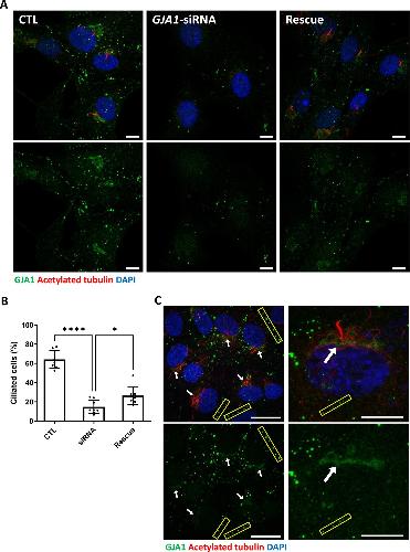 GJA1 depletion causes ciliary defects by affecting Rab11 trafficking to the ciliary base., Jang DG, Kwon KY, Kweon YC, Kim BG, Myung K, Lee HS, Young Park C, Kwon T, Park TJ., Elife. August 25, 2022; 11 |
