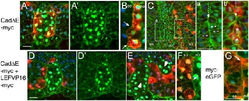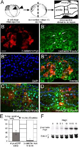 beta-Catenin controls cell sorting at the notochord- somite boundary independently of cadherin-mediated adhesion. , Reintsch WE, Habring-Mueller A, Wang RW , Schohl A , Fagotto F ., J Cell Biol. August 15, 2005; 170 (4): 675-86.