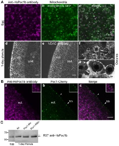 A highly conserved Poc1 protein characterized in embryos of the hydrozoan Clytia hemisphaerica: localization and functional studies. , Fourrage C, Chevalier S, Houliston E ., PLoS One. November 16, 2010; 5 (11): e13994.