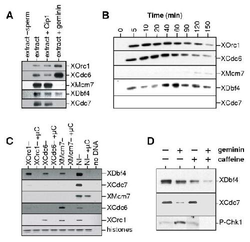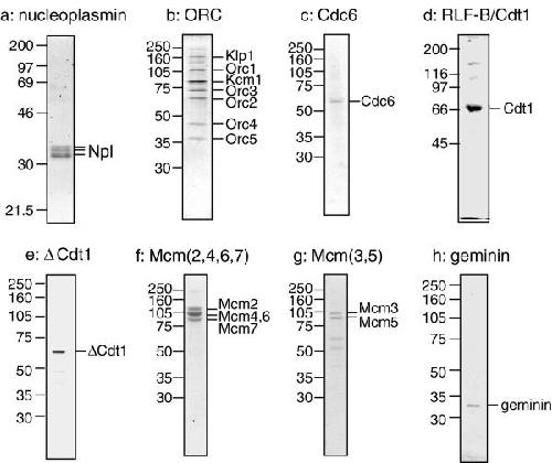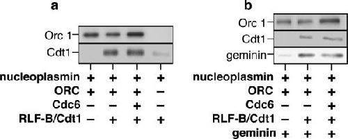 Repression of origin assembly in metaphase depends on inhibition of RLF-B/ Cdt1 by geminin. , Tada S, Li A, Maiorano D , Méchali M, Blow JJ ., Nat Cell Biol. February 1, 2001; 3 (2): 107-13.