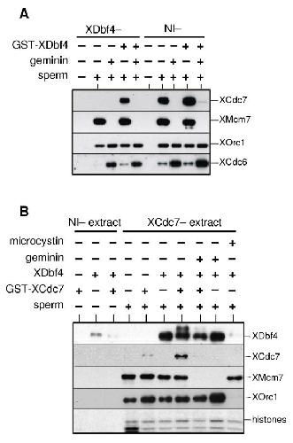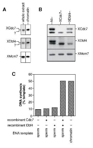 Xenopus cdc7 function is dependent on licensing but not on XORC, XCdc6, or CDK activity and is required for XCdc45 loading. , Jares P, Blow JJ ., Genes Dev. June 15, 2000; 14 (12): 1528-40.