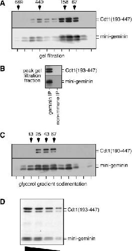 Quaternary structure of the human Cdt1- Geminin complex regulates DNA replication licensing. , De Marco V, Gillespie PJ, Li A, Karantzelis N, Christodoulou E, Klompmaker R, van Gerwen S, Fish A, Petoukhov MV, Iliou MS, Lygerou Z, Medema RH, Blow JJ , Svergun DI, Taraviras S, Perrakis A., Proc Natl Acad Sci U S A. November 24, 2009; 106 (47): 19807-12.