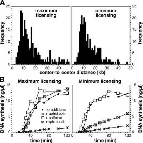 Replication origins in Xenopus egg extract Are 5-15 kilobases apart and are activated in clusters that fire at different times. , Blow JJ , Gillespie PJ, Francis D, Jackson DA., J Cell Biol. January 8, 2001; 152 (1): 15-25.