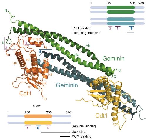 The Geminin and Idas coiled coils preferentially form a heterodimer that inhibits Geminin function in DNA replication licensing. , Caillat C, Pefani DE, Gillespie PJ, Taraviras S, Blow JJ , Lygerou Z, Perrakis A., J Biol Chem. November 1, 2013; 288 (44): 31624-34.