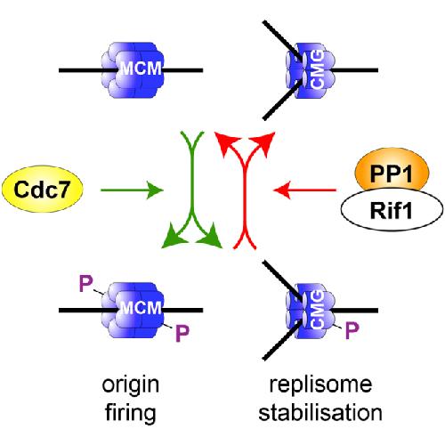Reversal of DDK-Mediated MCM Phosphorylation by Rif1- PP1 Regulates Replication Initiation and Replisome Stability Independently of ATR/ Chk1. , Alver RC, Chadha GS, Gillespie PJ, Blow JJ ., Cell Rep. March 7, 2017; 18 (10): 2508-2520.