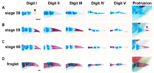 Evidence for an amphibian sixth digit. , Hayashi S, Kobayashi T, Yano T, Kamiyama N, Egawa S, Seki R, Takizawa K, Okabe M, Yokoyama H , Tamura K ., Zoological Lett. June 15, 2015; 1 17.
