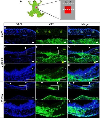 Cells from subcutaneous tissues contribute to scarless skin regeneration in Xenopus laevis froglets. , Otsuka-Yamaguchi R, Kawasumi-Kita A, Kudo N, Izutsu Y , Tamura K , Yokoyama H ., Dev Dyn. August 1, 2017; 246 (8): 585-597.
