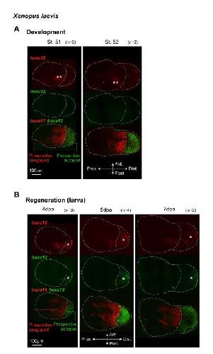 hoxc12/c13 as key regulators for rebooting the developmental program in Xenopus limb regeneration. , Kawasumi-Kita A, Lee SW, Ohtsuka D, Niimi K, Asakura Y, Kitajima K, Sakane Y, Tamura K , Ochi H , Suzuki KT , Morishita Y., Nat Commun. April 22, 2024; 15 (1): 3340.