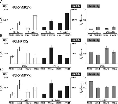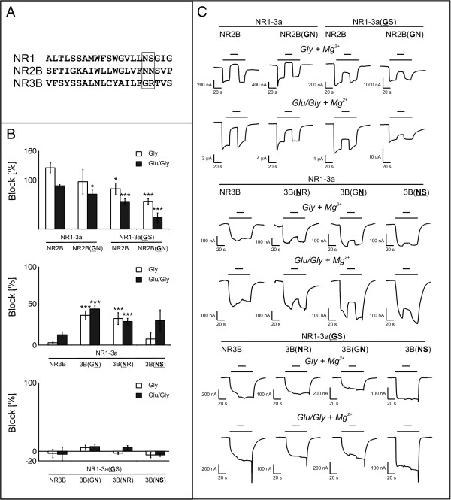 Residues at the tip of the pore loop of NR3B-containing NMDA receptors determine Ca2+ permeability and Mg2+ block., Cavara NA, Orth A, Hicking G, Seebohm G, Hollmann M., BMC Neurosci. October 19, 2010; 11 133. |