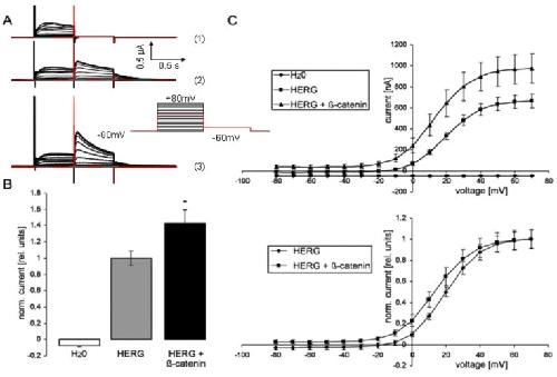 Stimulation of HERG channel activity by β-catenin., Munoz C, Saxena A, Pakladok T, Bogatikov E, Wilmes J, Seebohm G, Föller M, Lang F., PLoS One. January 1, 2012; 7 (8): e43353. |