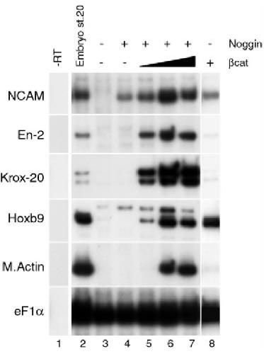 The Wnt/beta-catenin pathway posteriorizes neural tissue in Xenopus by an indirect mechanism requiring FGF signalling. , Domingos PM , Itasaki N, Jones CM , Mercurio S, Sargent MG, Smith JC , Krumlauf R ., Dev Biol. November 1, 2001; 239 (1): 148-60.