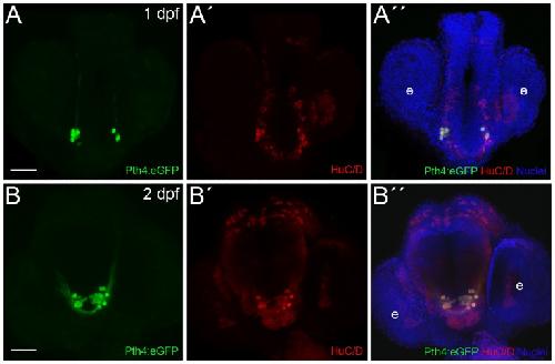 Pth4, an ancient parathyroid hormone lost in eutherian mammals, reveals a new brain-to- bone signaling pathway. , Suarez-Bregua P, Torres-Nuñez E, Saxena A, Guerreiro P, Braasch I, Prober DA, Moran P, Cerda-Reverter JM, Du SJ, Adrio F, Power DM, Canario AV, Postlethwait JH, Bronner ME , Cañestro C, Rotllant J., FASEB J. February 1, 2017; 31 (2): 569-583.