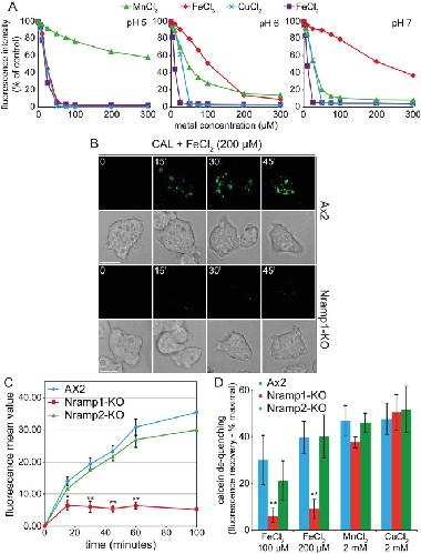 Dictyostelium Nramp1, which is structurally and functionally similar to mammalian DMT1 transporter, mediates phagosomal iron efflux., Buracco S, Peracino B, Cinquetti R, Signoretto E, Vollero A, Imperiali F, Castagna M, Bossi E, Bozzaro S., J Cell Sci. September 1, 2015; 128 (17): 3304-16. |