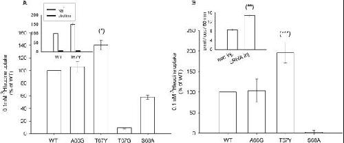 Threonine 67 is a key component in the coupling of the NSS amino acid transporter KAAT1., Giovanola M, Vollero A, Cinquetti R, Bossi E, Forrest LR, Di Cairano ES, Castagna M., Biochim Biophys Acta Biomembr. May 1, 2018; 1860 (5): 1179-1186. |