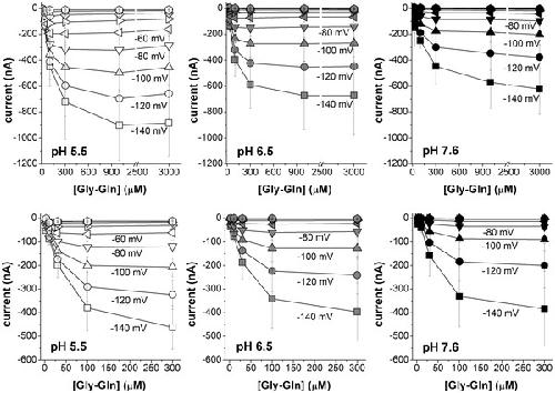 Functional and structural determinants of reverse operation in the pH-dependent oligopeptide transporter PepT1., Renna MD, Oyadeyi AS, Bossi E, Kottra G, Peres A., Cell Mol Life Sci. September 1, 2011; 68 (17): 2961-75. |
